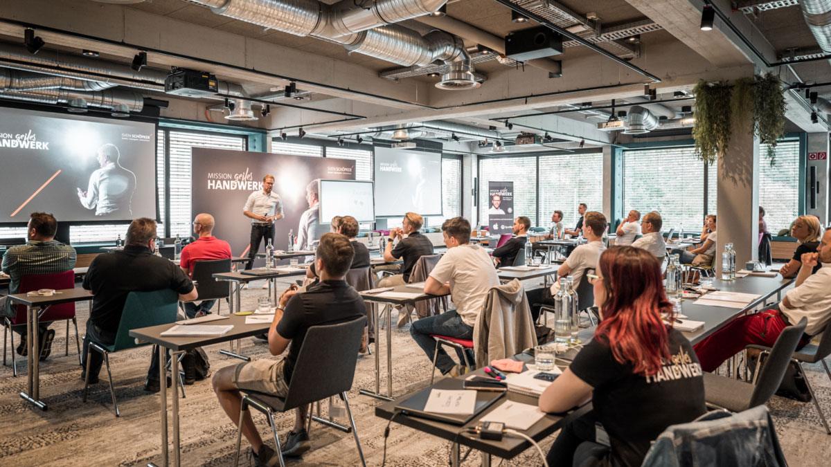 Mit Herzblut Handwerker zu sein ist das eine. Doch zu einem erfolgreichen Geschäft gehört einiges mehr. So muss das Produkt oder die Dienstleistung auch an den Mann gebracht, sprich gewinnbringend verkauft werden. Ebenso braucht ein Handwerksbetrieb durchdachte Prozesse und Strategien im Unternehmen, damit am Ende ein wirtschaftlicher Profit erzielt werden kann. Nicht selten fehlt es Handwerkern an ebensolchen Prozessen – mit der Konsequenz, dass das Zeitmanagement ineffizient, die Arbeitswoche lang und der finanzielle Gewinn verhältnismäßig gering ist. Nicht zuletzt gehört auch eine passende Marketingstrategie zu den Aufgaben eines Handwerkers. Denn wer nicht am Markt gesehen wird, kann nicht zum Magneten für Kunden werden. Wie viel Arbeit wirklich hinter einem funktionierenden Betrieb steckt, hat Sven Schöpker von Raumfabrik früh erkannt.